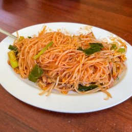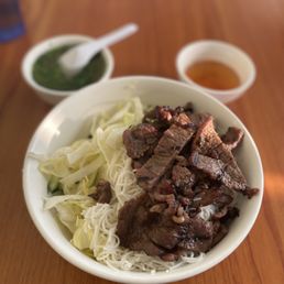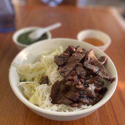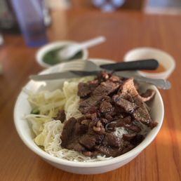Service was quick and food was fresh. The amount of rice noodle to fresh veggies (cucumber, lettuce, bean sprouts) was a bit overwhelming but the really odd part was it looked like someone made rice noodles and then cut them to be the size of rice??? Doesn't change the taste of dish but was not what I was expecting or wanting.